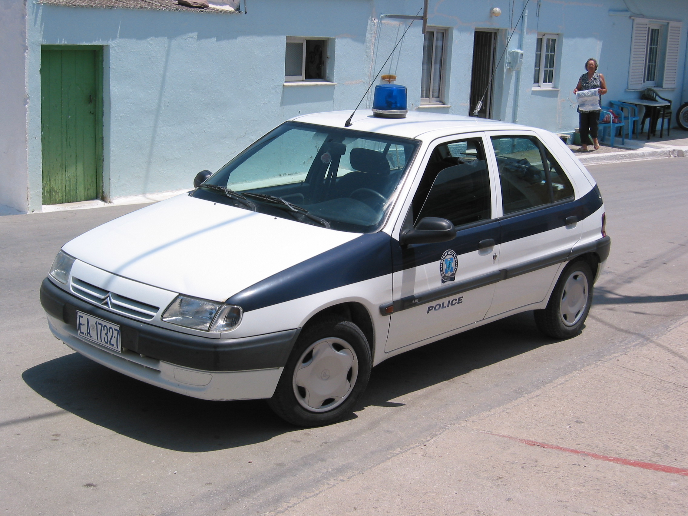 Saxo i den første version, her som politibil på Rhodos juni 2004.
